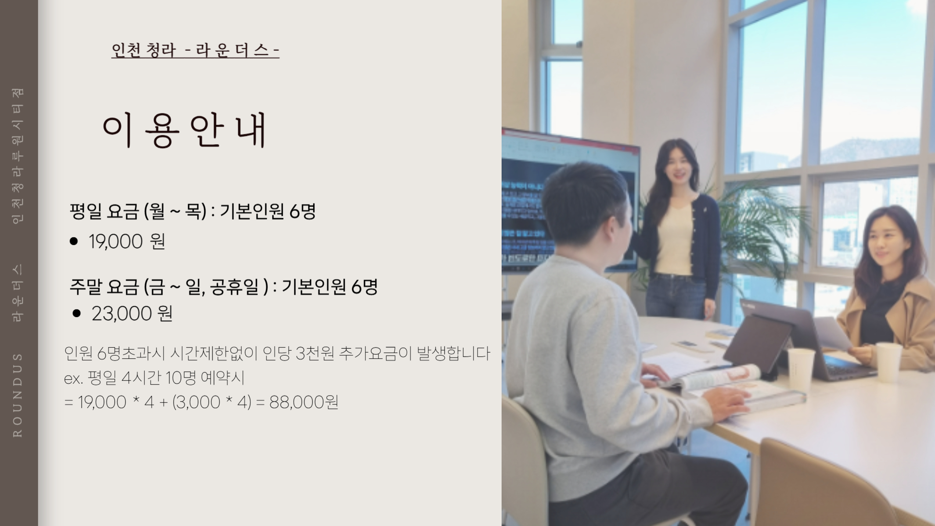 인천 회의실 라운더스: 다양한 모임을 위한 최적의 공간